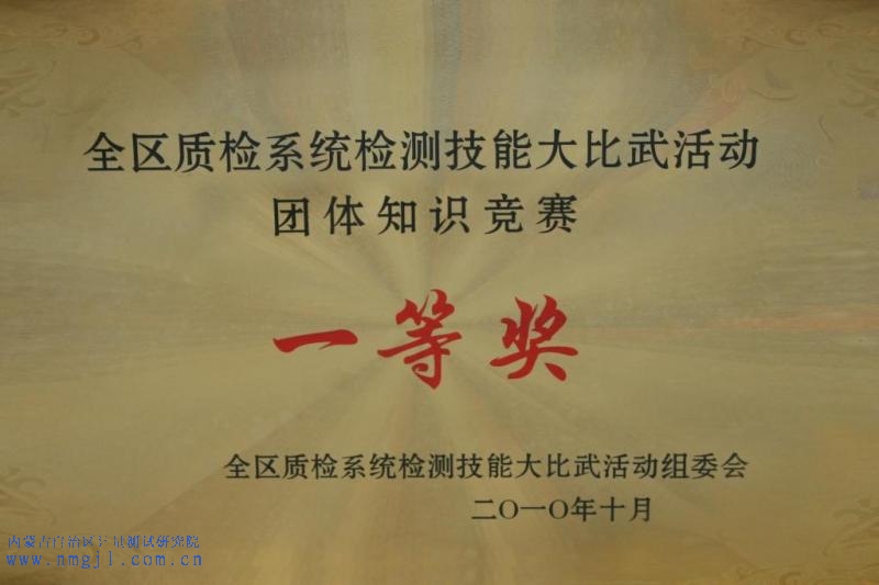 全區質檢系統檢測技能大比武活動團體知識競賽一等獎(二O一O年十月)