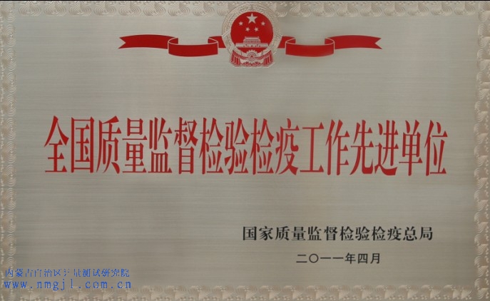 全國質量監督檢驗檢疫工作先進單位(二O一一年四月)