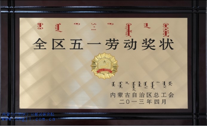 內(nèi)蒙古自治區(qū)五一勞動(dòng)獎(jiǎng)狀(二O一三年四月)