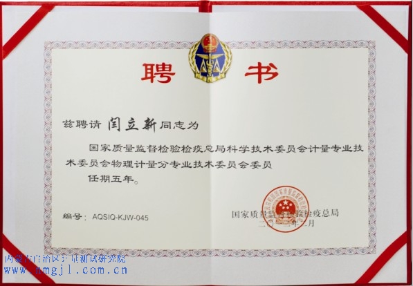 ??? 我院總工程師被聘任為專業(yè)技術(shù)委員會委員,是內(nèi)蒙古計量科研工作發(fā)展的一件大事。