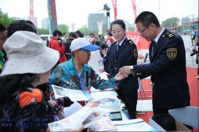 ??? 在廣場(chǎng)熙熙攘攘的人流中,身著質(zhì)監(jiān)制服的計(jì)量院服務(wù)人員以精準(zhǔn)的技術(shù)、優(yōu)質(zhì)的服務(wù)態(tài)度受到廣大市民一致好評(píng)。講解人員從宏觀的科學(xué)計(jì)量、能源計(jì)量到社會(huì)關(guān)注、百姓關(guān)心的涉及醫(yī)療、民用四表(水、電、氣、熱四表)、加油機(jī)、商品量等民生計(jì)量知識(shí)進(jìn)行了現(xiàn)場(chǎng)解答,國(guó)衡中心主任狄玉峰就太陽(yáng)膜相關(guān)知識(shí)進(jìn)行了講解和現(xiàn)場(chǎng)演示,并接受了內(nèi)蒙古電視臺(tái)的采訪;醫(yī)療與光學(xué)計(jì)量所門小冬就消費(fèi)者投訴比較多的眼鏡接受了內(nèi)蒙古晨報(bào)的采訪;流量計(jì)量所王學(xué)軍就百姓比較關(guān)心的“民用四表”接受了內(nèi)蒙古日?qǐng)?bào)的采訪;業(yè)務(wù)拓展部李彧為消費(fèi)者現(xiàn)場(chǎng)發(fā)放了標(biāo)值為100克的便攜砝碼,精致的砝碼上還印有12365投訴電話,消費(fèi)者在購(gòu)買物品時(shí)不僅可以通過(guò)砝碼檢測(cè)小型衡器的準(zhǔn)確性,如發(fā)現(xiàn)計(jì)量器具不準(zhǔn)確還可以電話投訴。