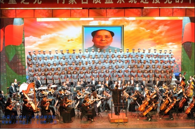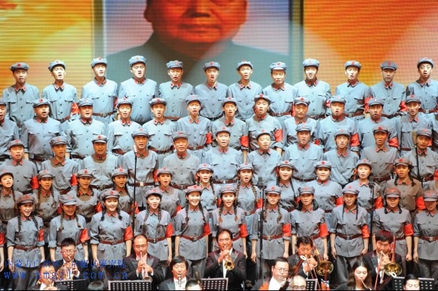 ??? “東方紅,太陽升,中國出了個毛澤東……”熟悉高亢的旋律在會堂內(nèi)響起時,立即響起雷鳴般的掌聲。紅色的歌詞、紅色的情懷,將人們思緒帶入到那個特殊的年代……開場由122名合唱演員和78名交響樂手組成的計量院大合唱在指揮的統(tǒng)一指揮下以強(qiáng)大的陣容和震撼人心的演唱為整臺晚會演出開了好頭。演唱人員穿著整齊的“紅軍服”,樂手穿著禮服,洪亮的歌聲在斗志昂揚(yáng)的指揮下,感染了全體觀眾。當(dāng)唱到“毛主席用兵真如神”時,全場沸騰了,經(jīng)久不息的掌聲響徹在禮堂的每個角落,紅色激情在每一個人胸中激蕩……