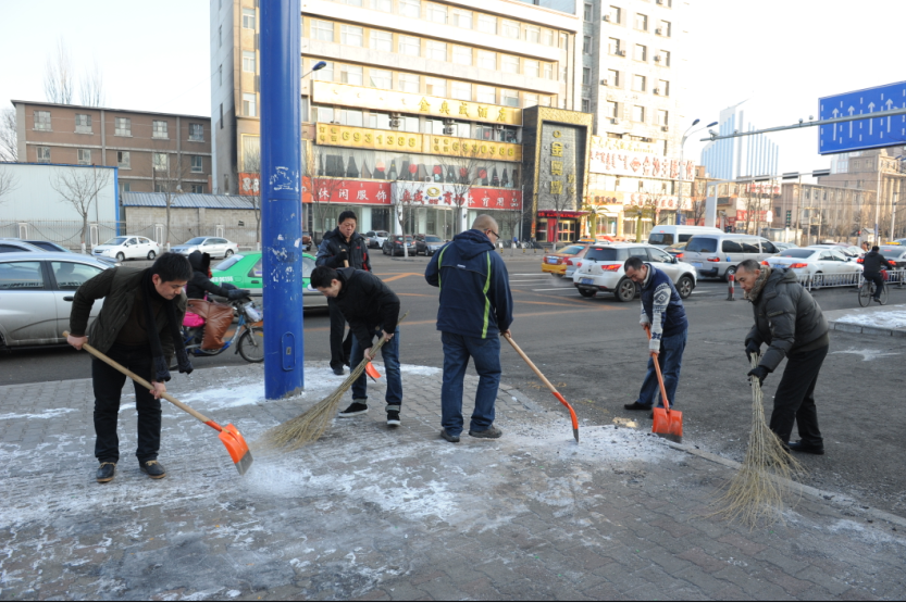 ??? 黨員志愿者帶頭,群眾也自發加入了破冰除雪隊伍當中。此次除雪工作中,共投入100余人次,大家個個干勁十足,認真清掃單位周邊的積雪和冰凍,方便了行人和車輛的通行。在全員的共同努力下,清理了單位門前主干道及人行道上的積雪,確保了此段道路暢通。